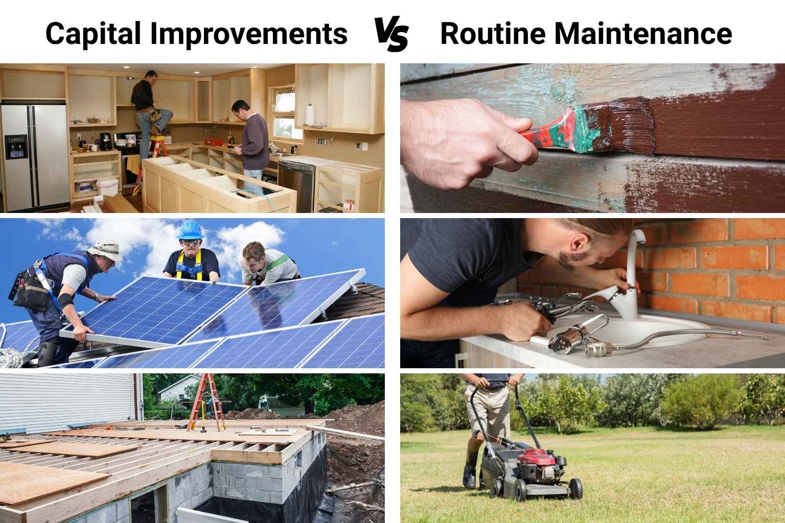 Adding a new room, installing solar, or replacing a roof = improvement. Fixing a faucet, patching a leak, or trimming trees = maintenance. Improvements count toward basis; repairs don’t.