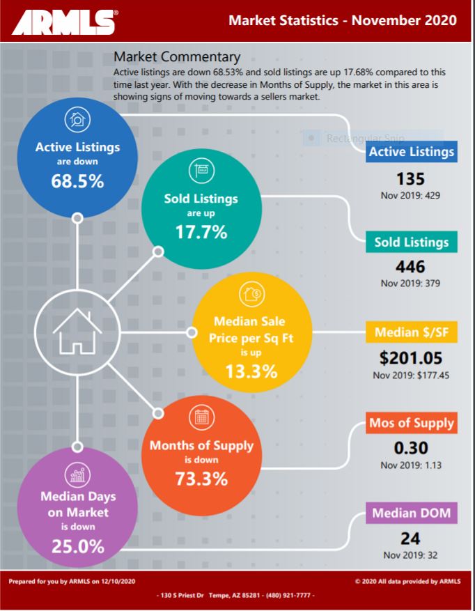 ? Below is a snapshot of Gilbert’s Real Estate Market Statistics for November 2020