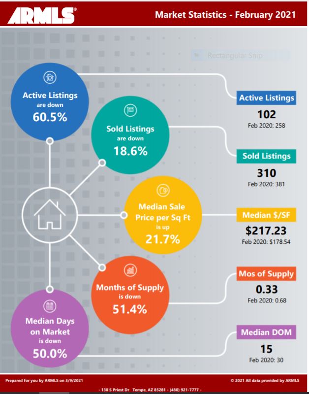 ? Below is a snapshot of Gilbert’s Real Estate Market Statistics for February 2021