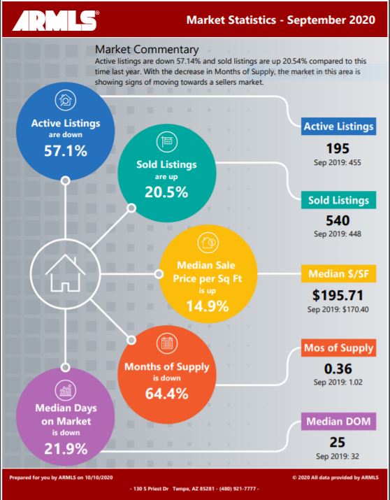? Below is a snapshot of Gilbert’s Real Estate Market Statistics for September 2020
