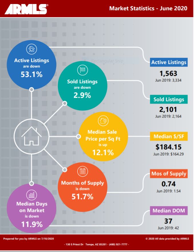 ? Below is a snapshot of Phoenix’s Real Estate Market Statistics for June 2020