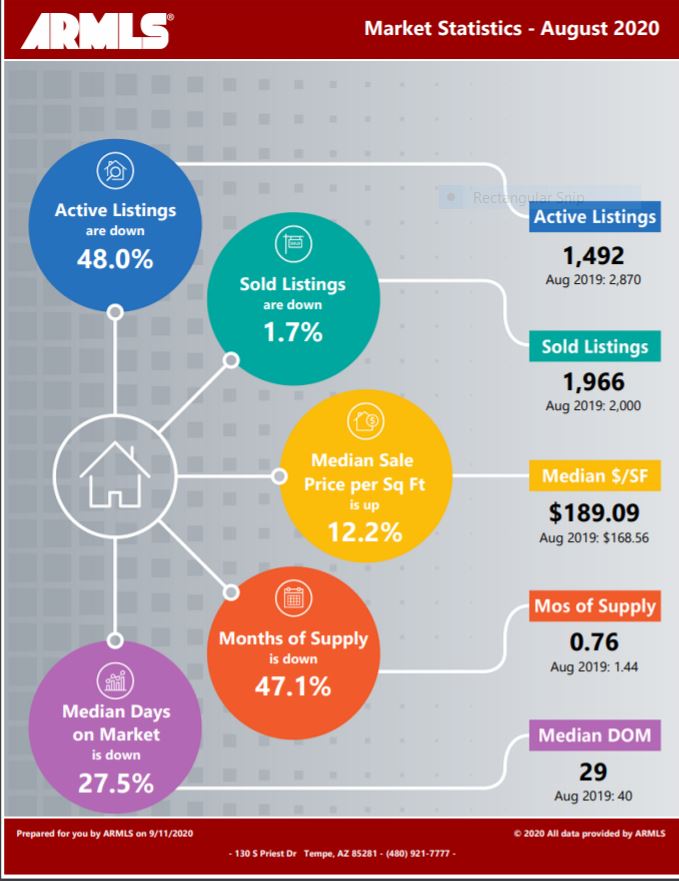 ? Below is a snapshot of Phoenix’s Real Estate Market Statistics for August 2020