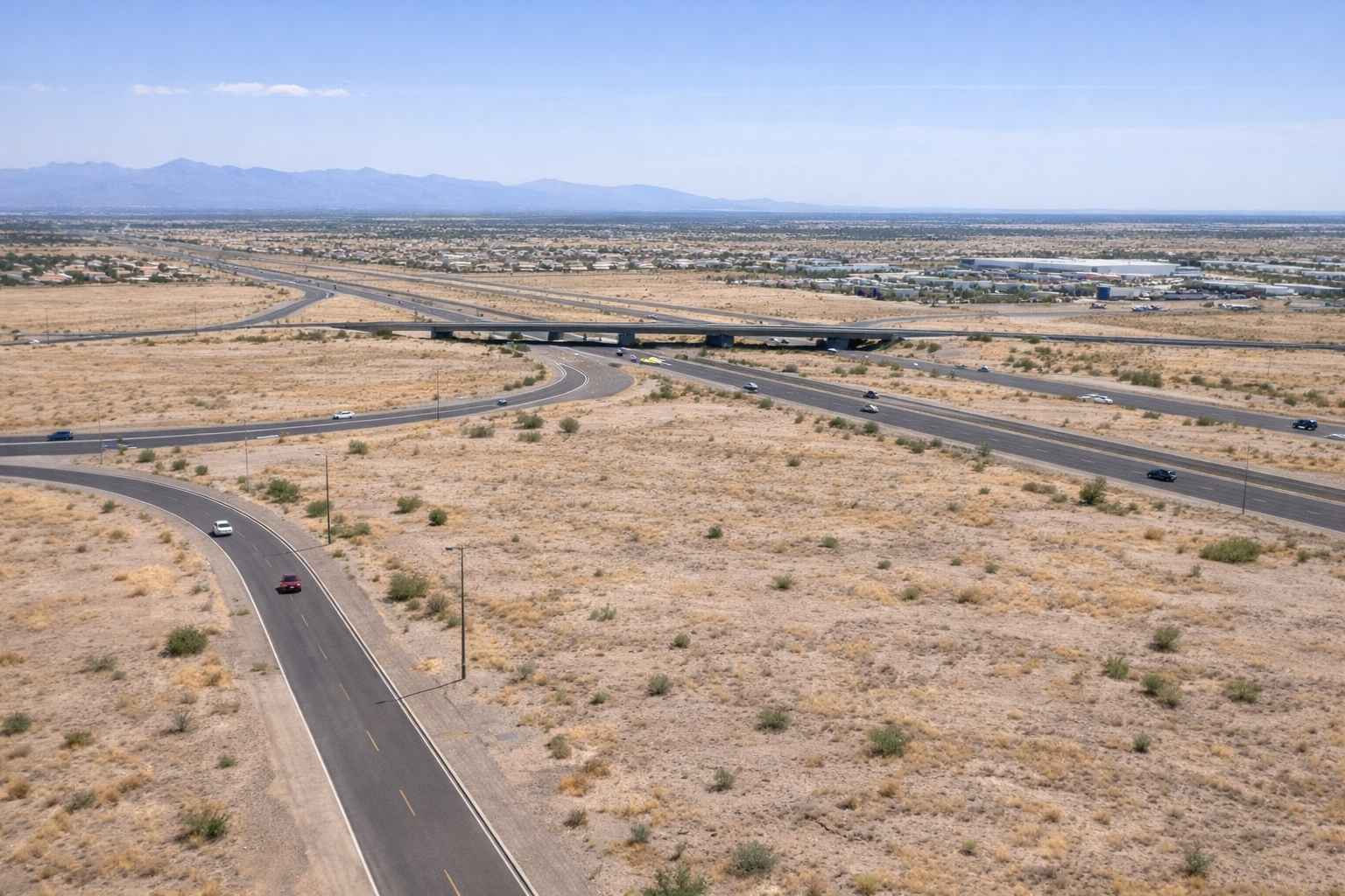 Highway access and open land near Eloy Arizona representing future connectivity